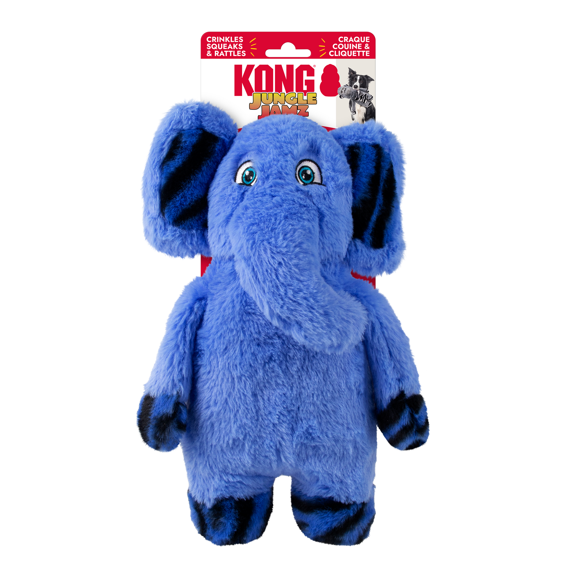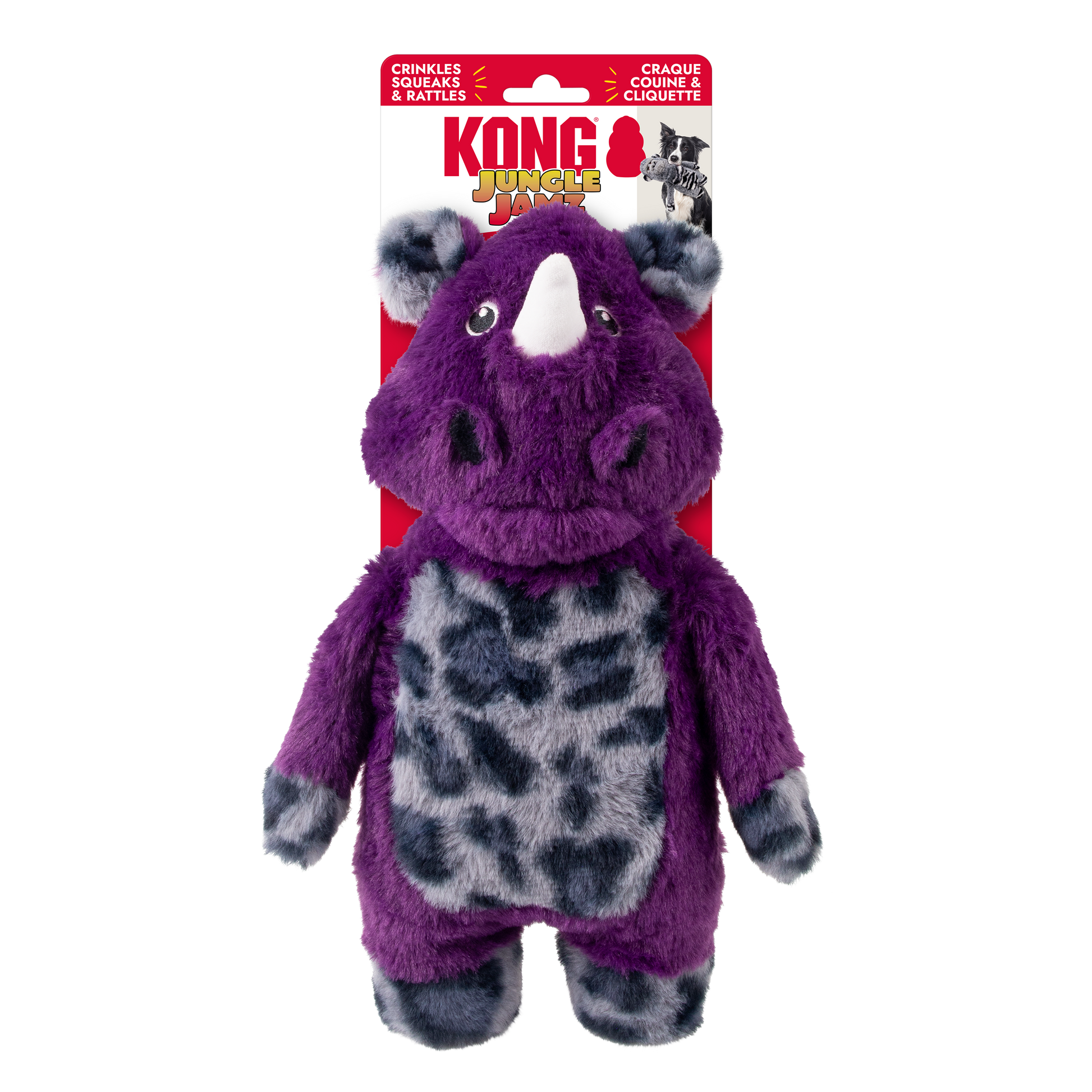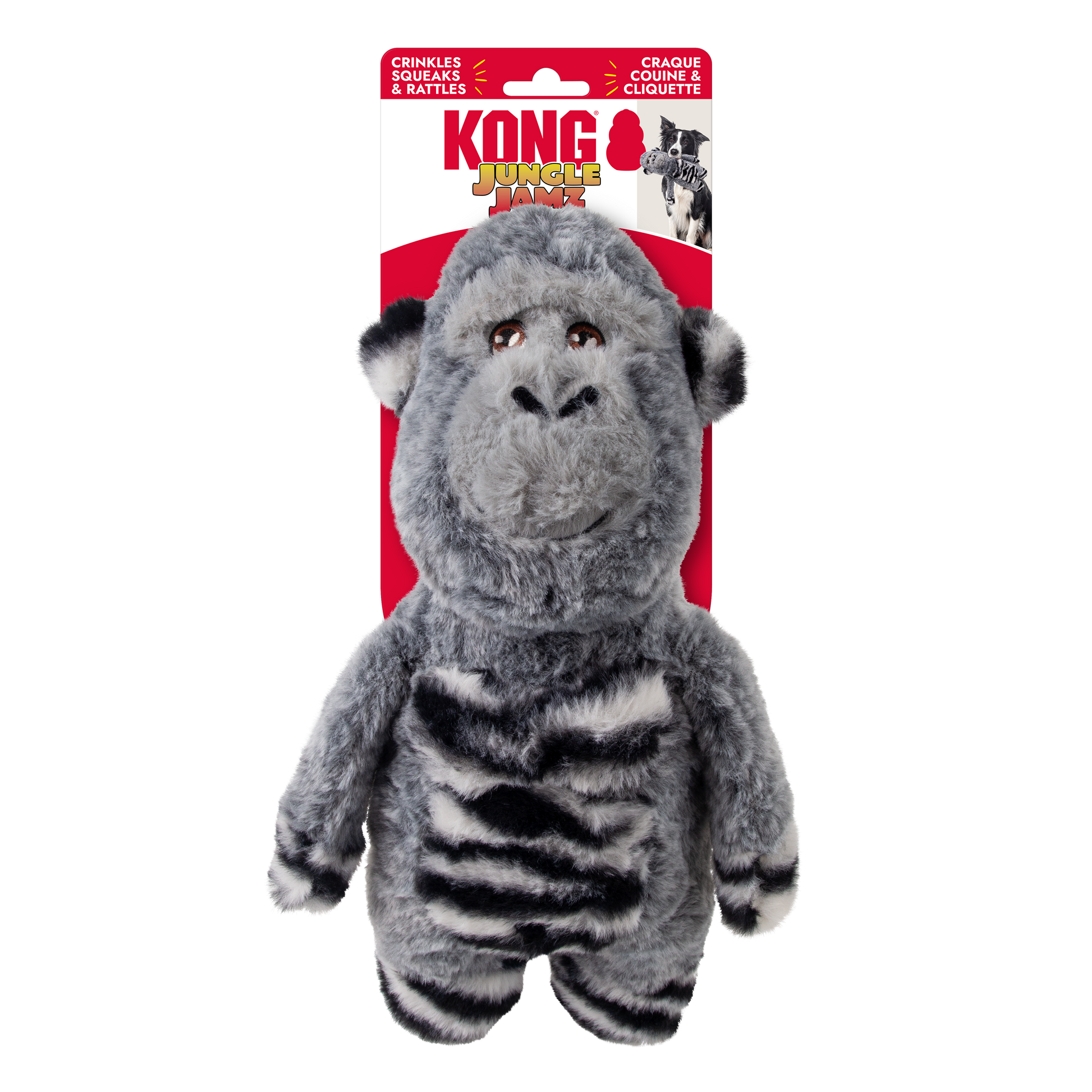 Les peluches KONG Jungle Jamz invitent à un safari symphonique à l'heure du jeu ! Chaque personnage renferme un sifflet intégral double solide pour des séances de jeu frénétiques. Le matériau crépitant interne et un grelot ajoutent des percussions à la mélodie de sons. La peluche douce récompense la mastication convenable et les cajoleries au moment de la sieste des copains de la jungle.